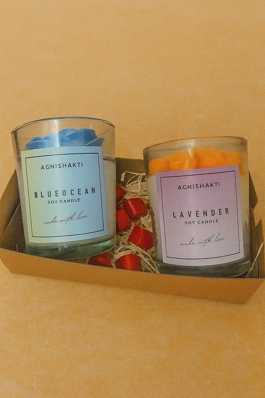 • Hand-poured soy candles.